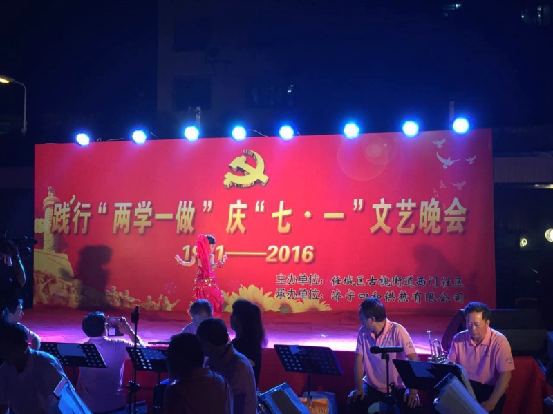 為紀(jì)念中國(guó)共產(chǎn)黨成立95周年,進(jìn)一步激發(fā)基層黨組織活力,促進(jìn)和諧社企建設(shè),展示社區(qū)濃厚的文化氛圍和企業(yè)關(guān)愛(ài)民生的責(zé)任擔(dān)當(dāng),由任城區(qū)古槐街道西門(mén)社區(qū)主辦,濟(jì)寧四和供熱有限公司承辦的“踐行‘兩學(xué)一做’慶‘七·一’”主題文藝晚會(huì)在光明健身廣場(chǎng)隆重舉行,四和供熱公司演職人員同廣大黨員群眾一起載歌載舞共迎黨的生日。