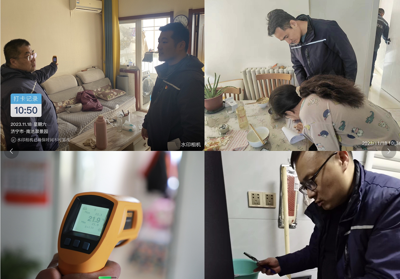 活動開始前,四和供熱黨支部書記向全體黨員闡述了此次活動的意義和目的,明確了活動的要求和安排,表達(dá)了為用戶提供優(yōu)質(zhì)供熱服務(wù)的堅(jiān)定決心和信心。隨后,領(lǐng)導(dǎo)班子成員帶隊(duì)前往九九花園、鳳凰城、水韻城等多個(gè)供熱轄區(qū)開展入戶走訪活動,并對邊角樓頭、頂層及底層用戶進(jìn)行重點(diǎn)摸排走訪。在入戶走訪的過程中,黨員志愿者們主動亮身份、當(dāng)先鋒,積極認(rèn)領(lǐng)工作任務(wù),分組分樓逐一開展排查,現(xiàn)場測量室內(nèi)溫度、詢問用戶家中供熱情況,幫助用戶檢修室內(nèi)采暖設(shè)施,面對面、心貼心地與用戶進(jìn)行“零距離”溝通交流,傾聽記錄用戶的意見建議,為用戶講解供熱相關(guān)的知識和注意事項(xiàng),積極宣傳推廣“濟(jì)時(shí)熱”小程序,讓用戶體驗(yàn)更加快捷、高效的報(bào)修服務(wù)。同時(shí)發(fā)放集合了水、電、氣、暖等多種民生服務(wù)聯(lián)絡(luò)方式于一體的最新優(yōu)化升級的綜合便民服務(wù)卡,方便用戶咨詢解決各類訴求問題。